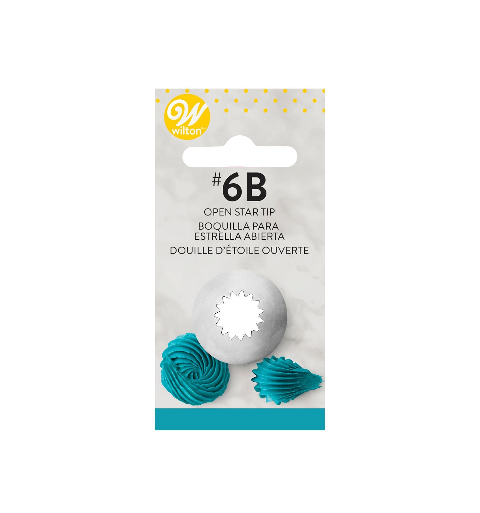 Boquilla de metal (boquilla de decoración/Boquilla) de Wilton para la elaboración de técnicas de estrella, flores-gota, bordes dentados. Se suministra empaquetado por unidad, en un blíster (con tarjeta de identificación).